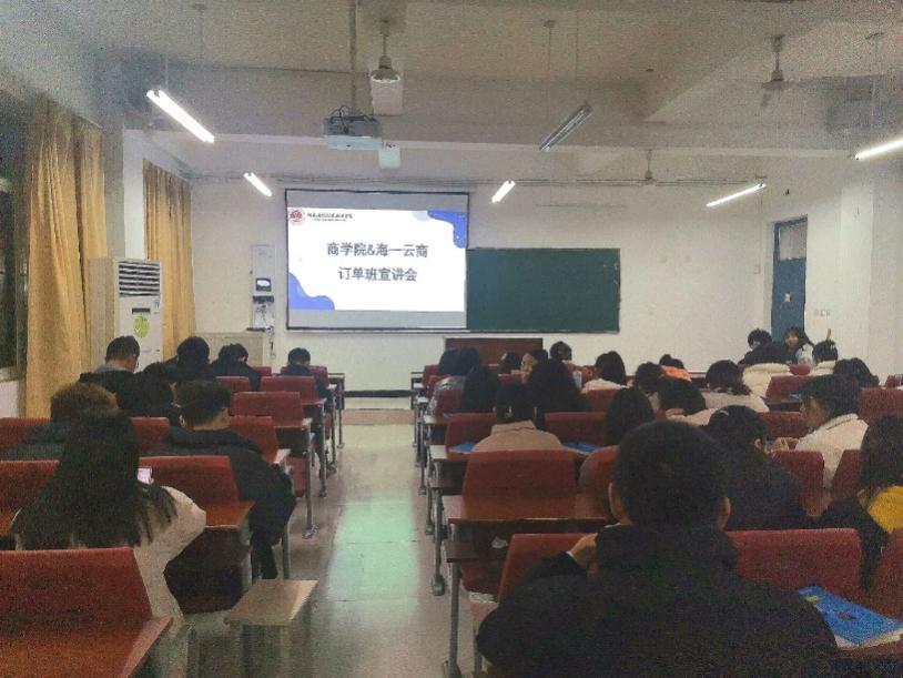 为加强学校与企业的合作,促进学生和企业之间的交流,提升学生技能并加深对行业的了解。Beat365中文官方网站于11月30日下午,在东校区教学楼102及203开展了海一云商集团订单班线上宣讲会。
