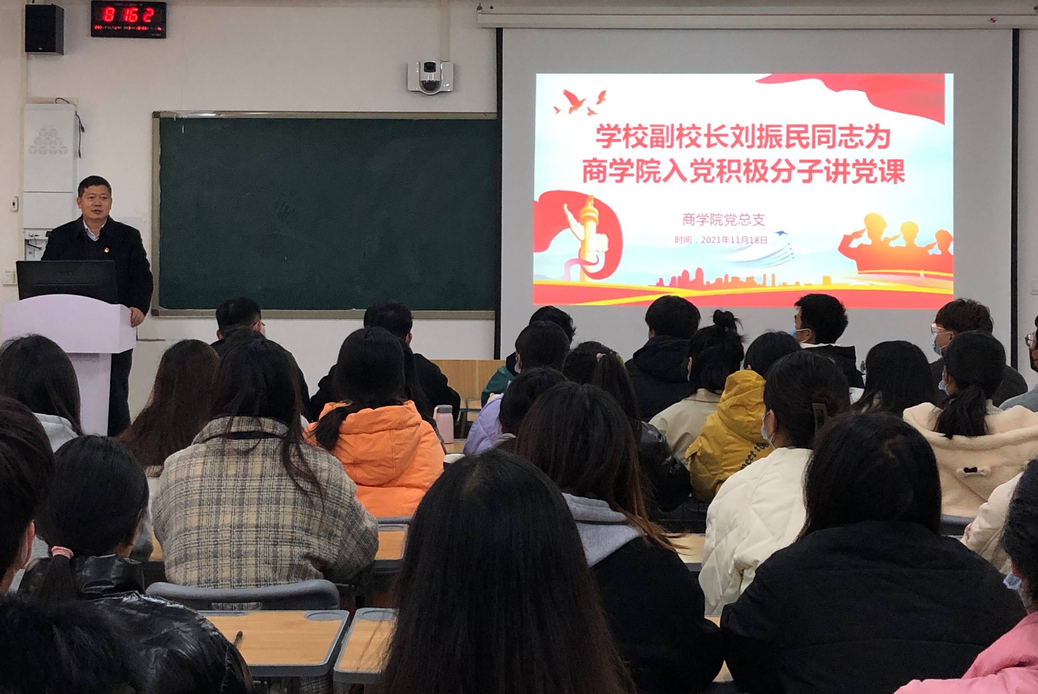 为深入贯彻落实习近平总书记在学校思想政治理论课教师座谈会上的重要讲话精神,有效推进学校党政领导干部上好思政课常态化,11月24日,副校长刘振民以“共同构建人与自然生命共同体”为题,为Beat365中文官方网站电商班学生讲了一堂生动的思政课。