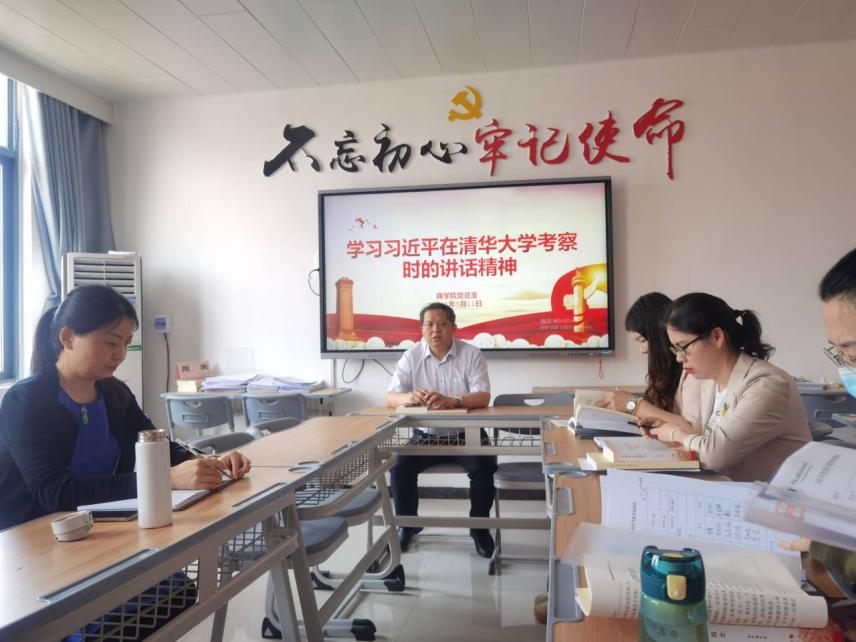 办公室主任刘嘉慧领学了习近平在清华大学考察时的发表的重要讲话。会后展开研讨,大家一致认为:习近平总书记在清华大学考察时的重要讲话,是对我国教育工作者的极大鼓励和殷切期望。开局“十四五”和全面建设社会主义现代化国家新征程,党和国家事业发展对高等教育的需要,对科学知识和优秀人才的需要,比以往任何时候都更为迫切。我们广大教师肩负着为党育人、为国育才的艰巨使命,一定要以习近平新时代中国特色社会主义思想为指导,坚定理想信念,承担起为祖国培养新一代建设者的神圣职责。
