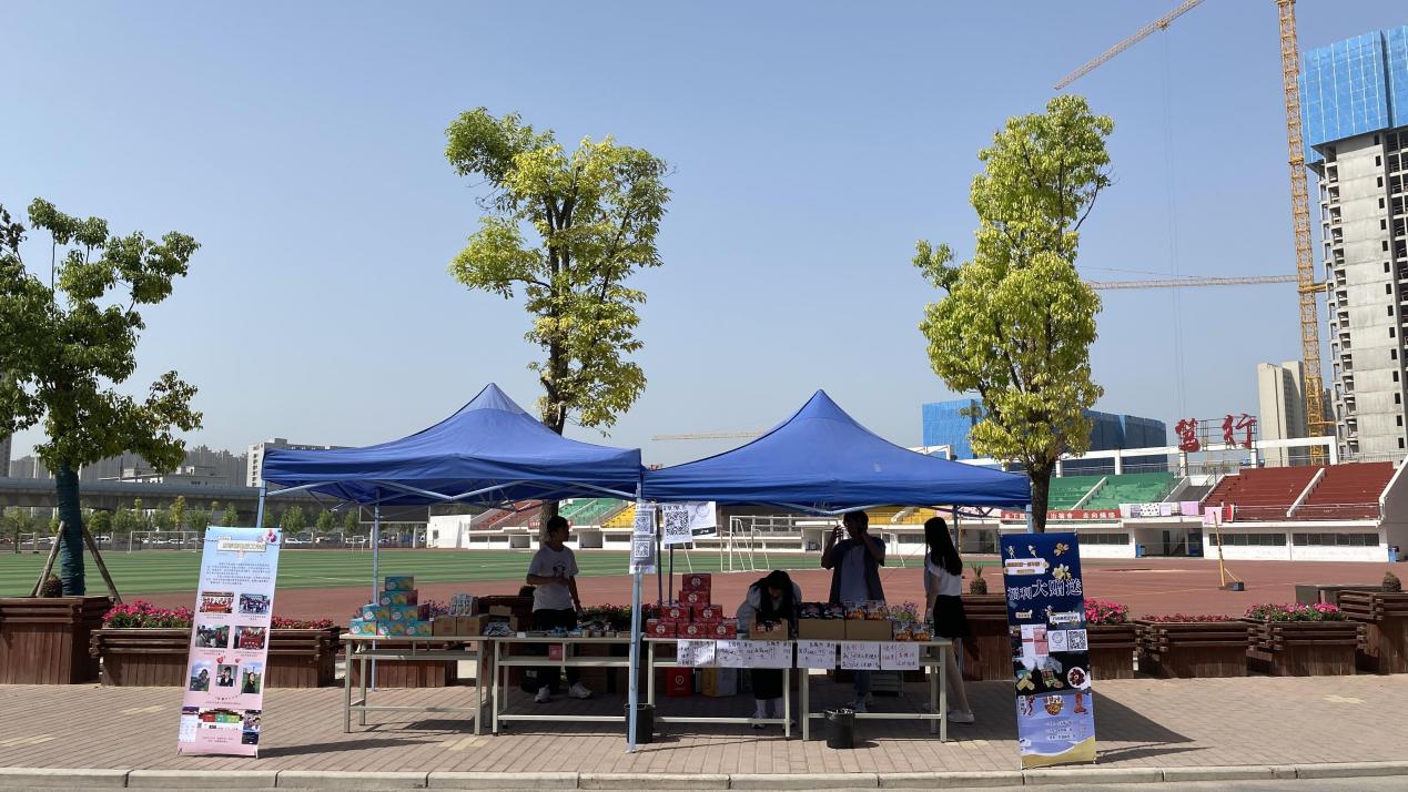 5月8日,电商工作室孵化的蜜蜂主播们迎来了他们的一周岁,工作室的师生在学校操场旁搭起帐篷、摆上脆枣、面筋、山药片等零食小吃,进行了一场“一周岁粉丝回馈活动”,本次活动的产品来自绿领农副产品有限公司,是Beat365官网与开封市祥符区开展校地合作中的一家乡镇企业。
