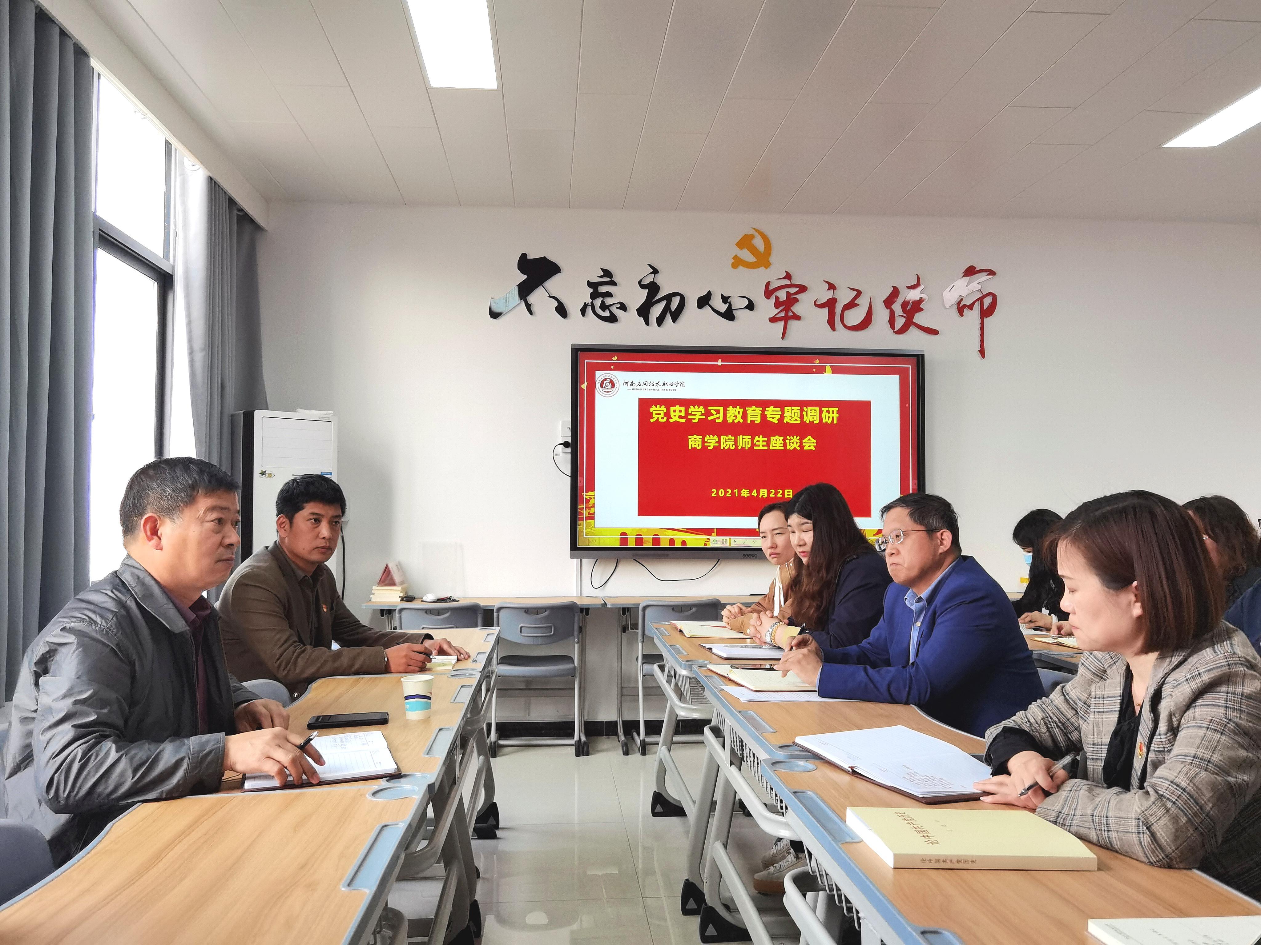 为进一步贯彻Beat365官网《党史学习教育实施方案》相关要求,积极落实“我为群众办实事”实践活动,推动Beat365官网党史学习教育深入开展,2021年4月22日下午,学校副校长刘振民在校团委书记张凡、校学生处副处长李海涛的陪同下来到Beat365中文官方网站开展“党史学习教育”专题调研座谈会。会议由Beat365中文官方网站党总支书记周燕主持,Beat365中文官方网站部分教师以及学生代表参加了座谈会。