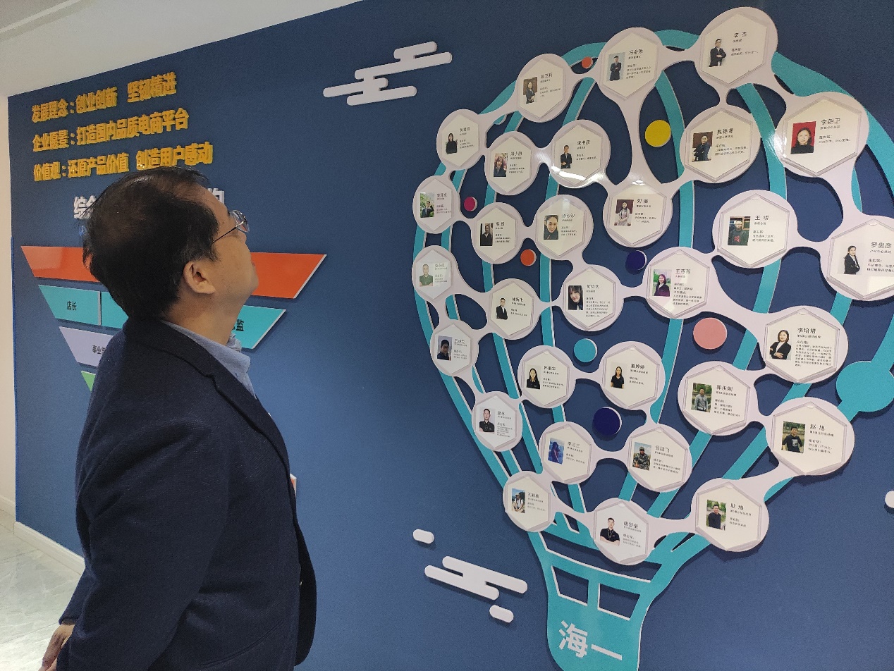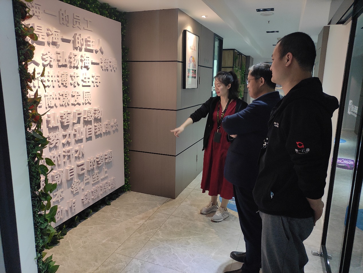 在企业负责人的陪同下,我院教师一行参观考察了电商运营区、直播工作区、智能服务区等办公场所,了解了公司文化、企业愿景、行业发展趋势等内容,对校企合作培养直播电商人才进行了深入讨论。