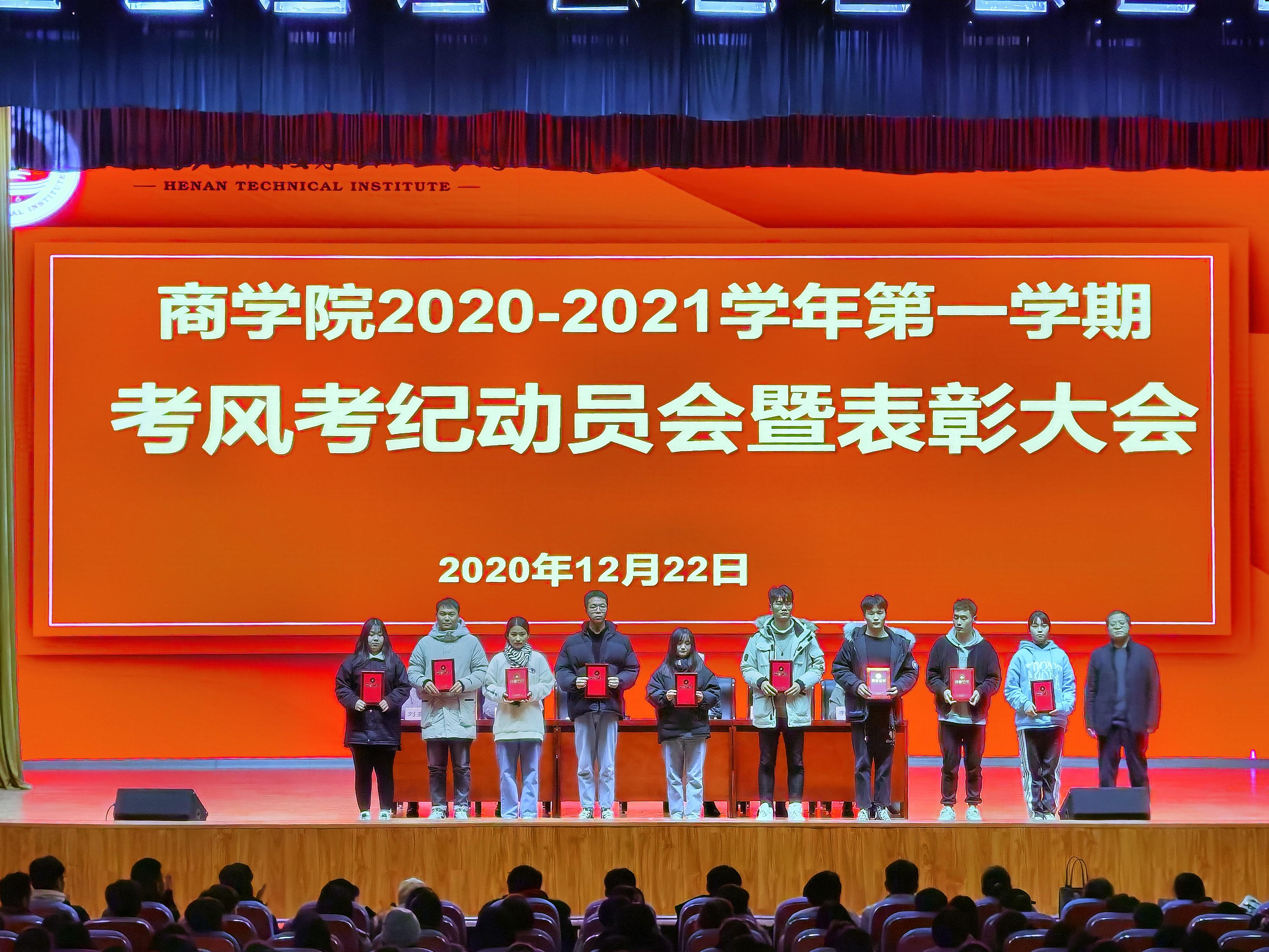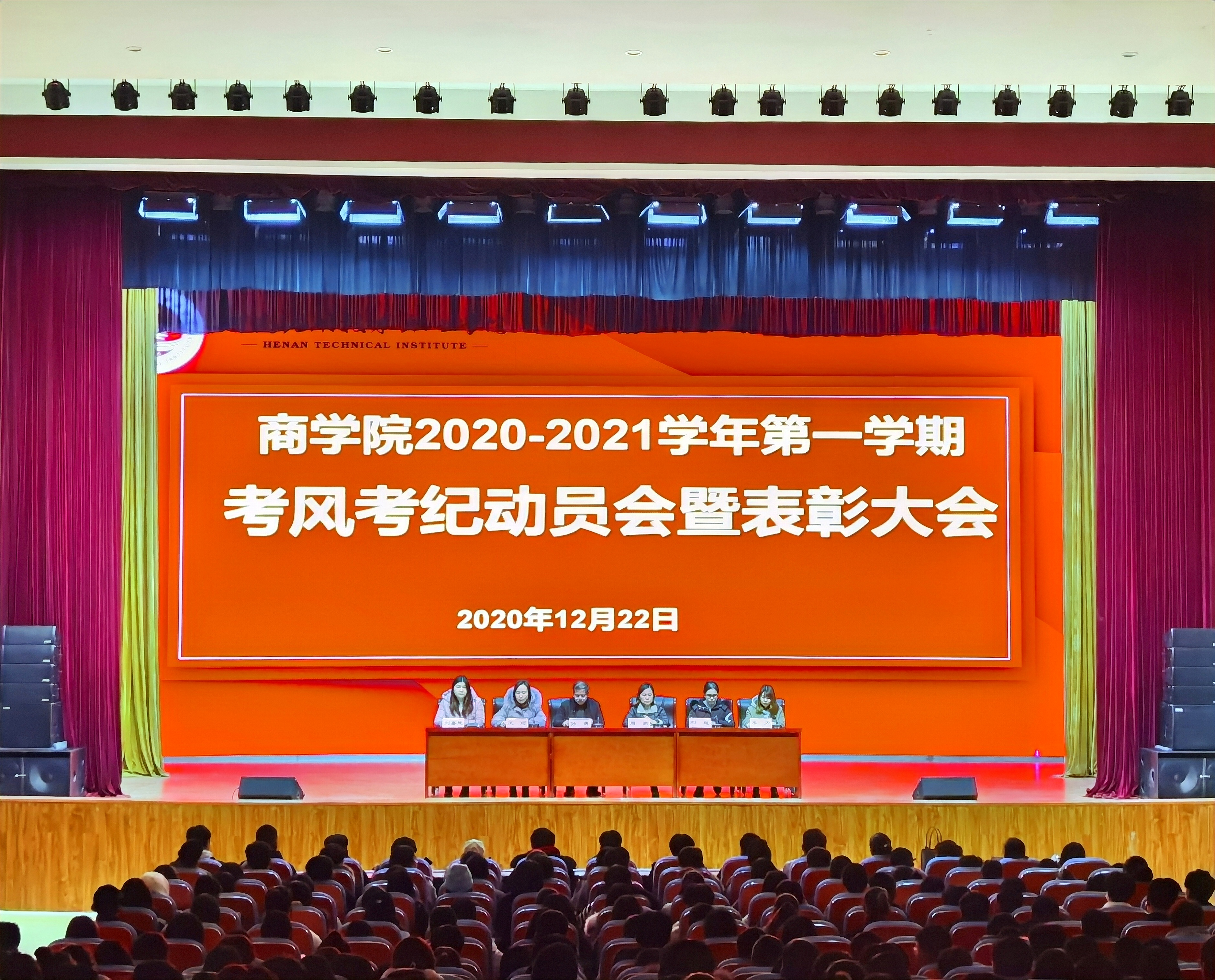 为总结成绩,严肃考风,Beat365中文官方网站于12月22日下午在学生活动中心召开了2020-2021学年第一学期考风考纪动员暨表彰大会。Beat365中文官方网站院长孙勇、党总支书记周燕、办公室主任刘嘉慧、团总支书记李力、学工办主任刘超、教学办主任王珂出席大会,全体2020级学生及辅导员、班主任参加了此次会议,办公室主任刘嘉慧主持会议。