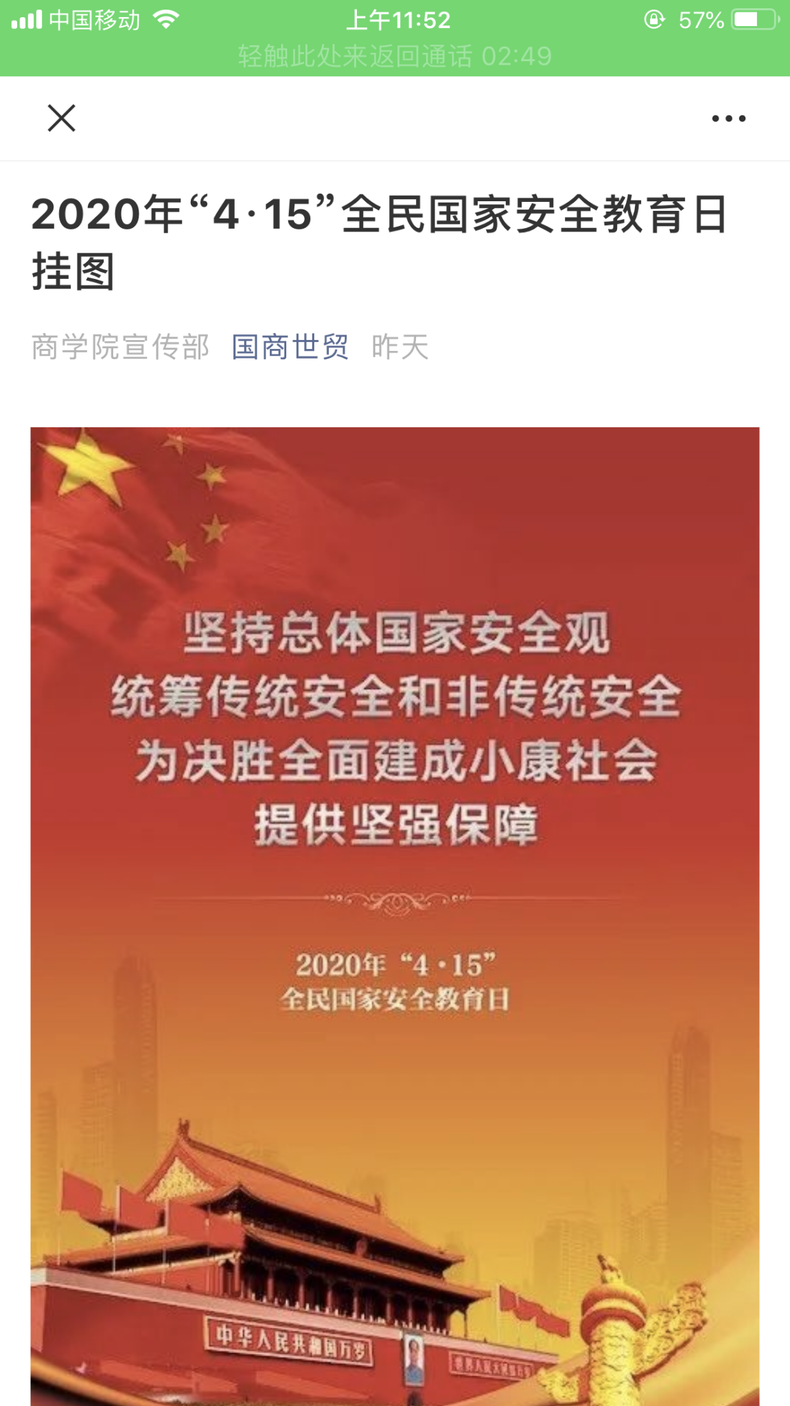 Beat365中文官方网站通过多种线上平台积极宣传“全民国家安全教育日”相关知识,切实加强全体师生的国家安全意识,提升师生维护国家安全的自觉性和主动性。通过微信公众号加大推动力度。