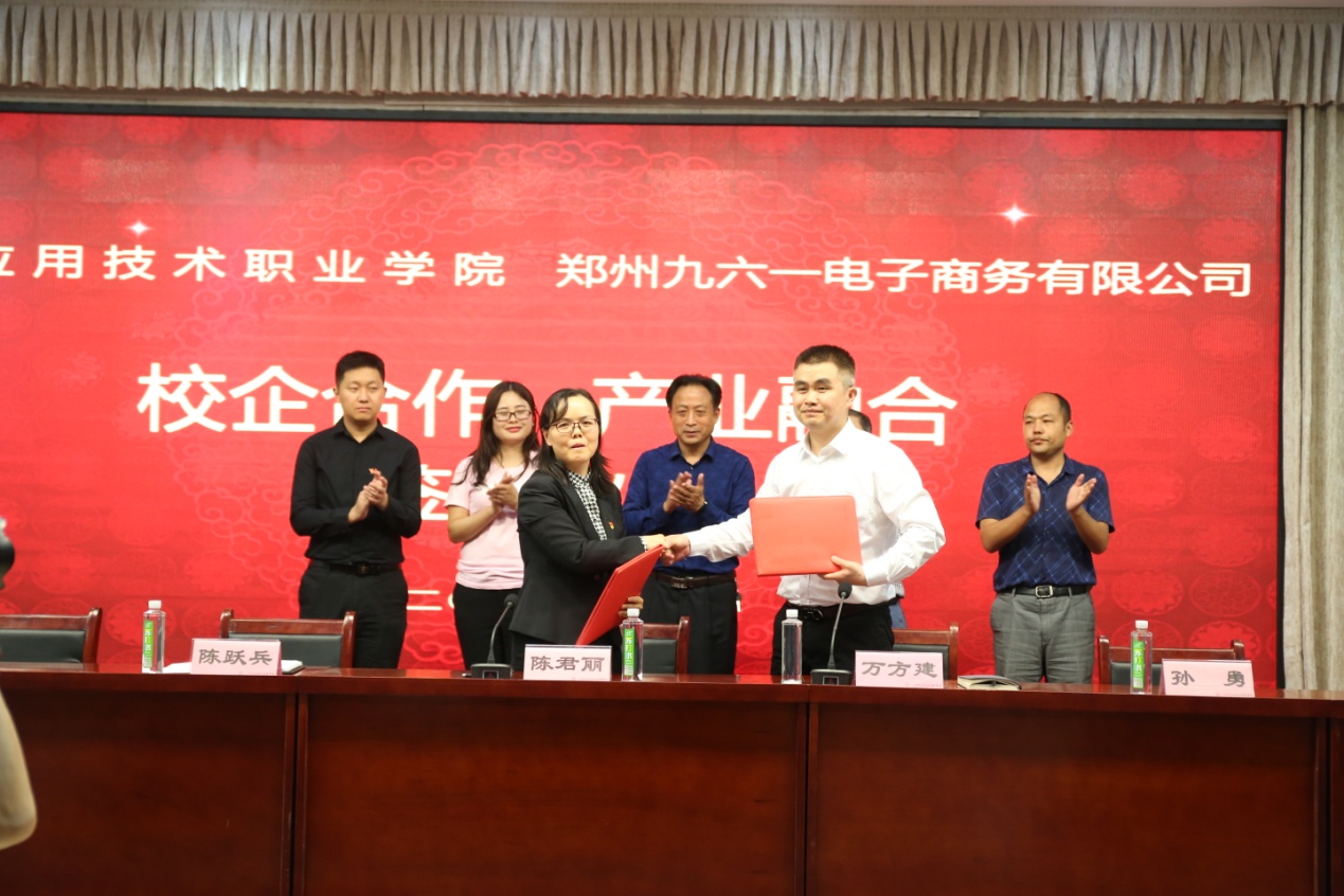 2019年5月14下午,Beat365官网与郑州九六一集团校企合作签约暨颁奖仪式在实训中心二楼会议室隆重举行。副校长陈君丽,郑州九六一集团总经理万方建、行政总监李伟,Beat365中文官方网站孙勇院长及相关部门负责人出席签约暨颁奖仪式。招生就业处副处长李向民主持会议。Beat365中文官方网站2017级全体学生参加了本次会议。