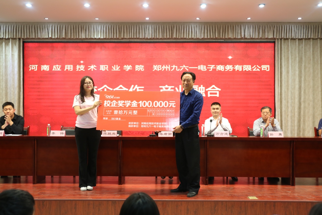 “九六一奖学金”和“九六一助学金”是郑州九六一电子商务有限公司在Beat365官网设立的“九六一基金”,目的是为了推动职业教育事业发展,促进校企文化交流,激励学生勤奋学习、刻苦钻研、勇于创新、奋斗成才。奖助学金的评定遵循公平,公开,公正原则,通过学生个人申报、集中评审、结果公示等评选程序,主要表彰那些学习成绩优异,文体活动积极,家庭贫困的优秀的大学生。让他们感受到来自社会的爱,更加热爱生活、积极参加社会实践,取得更优异的成绩。同时,企业也是为了感谢学校为其公司培养的高素质市场营销、电子商务和物流管理专业人才。