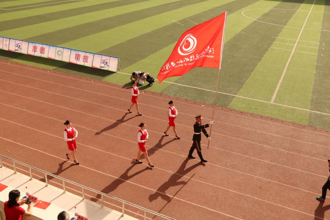 紧接着各学院裁判员代表入场,他们衣着鲜艳整齐面带笑容,昂首阔步,展示着他们的昂扬气势。你看过200多人一起跳卡路里吗,你看过几百人的太极拳表演吗?这是由各学院小姐姐和小哥哥代表带来的一场关于青春的表演。优美的旋律,动人的舞姿,她们以这样的方式鼓励着运动员驰骋赛场。