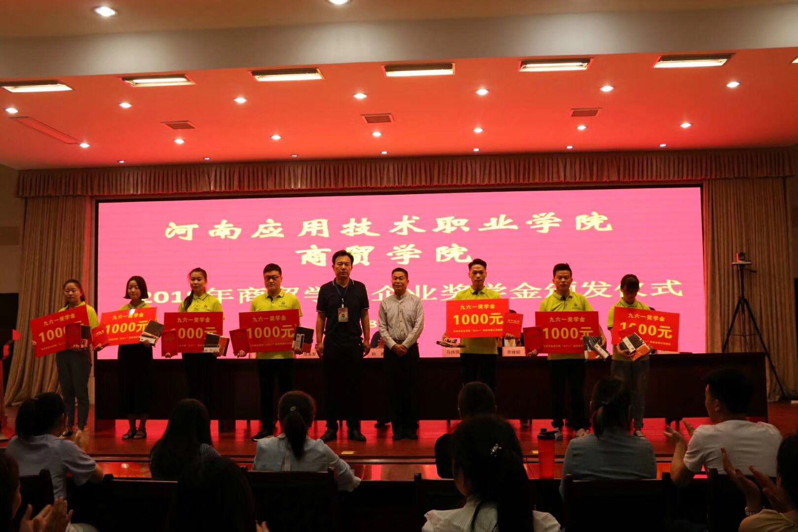 五月应院鲜花如海,商贸学子缤纷争芳。2018年5月8日中午,在实训中心楼二楼会议室,商贸学院举行了一场企业奖学金颁发大会。会议由商贸学院周燕书记主持,学生处马伟强处长和就业指导中心李向民主任应邀出席会议。河南九六一集团cco范永军教授,人资部经理李伟女士,郑州希尔信息技术有限公司人事行政部总经理-李婵娟女士作为奖学金赞助企业代表参加会议。