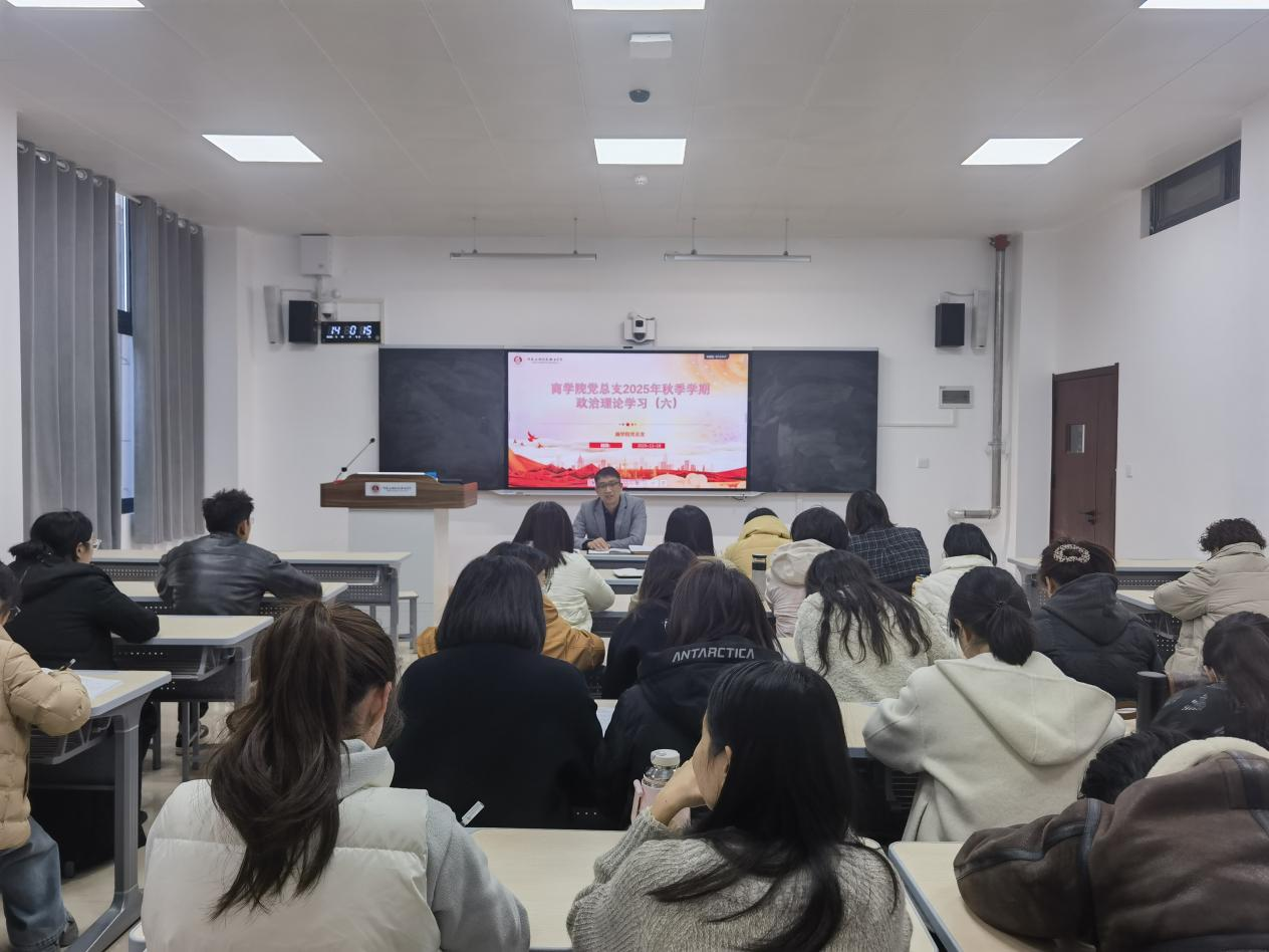 11月18日下午,Beat365中文官方网站党总支在B109教室召开政治理论学习专题会议,会议由党总支书记荆伟科主持,副院长刘嘉慧及全体教师参会。