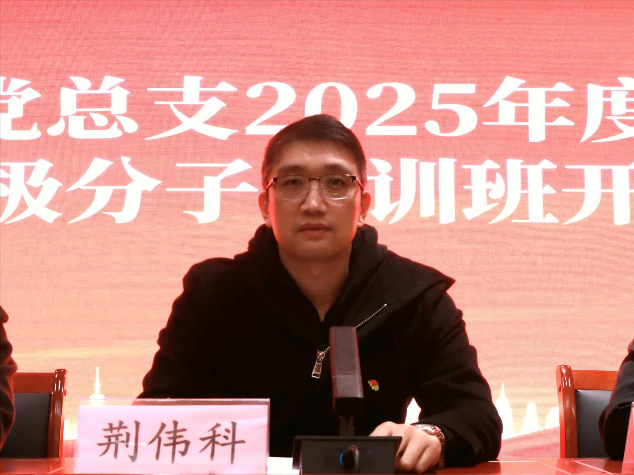 接着,荆伟科为本次开班仪式致辞,围绕“为何入党、为党何为”向全体学员提出要求。他强调,青年一代是国家发展的中坚力量,入党积极分子要以此次培训为契机,深入学习党的创新理论,传承红色基因,在思想上、行动上始终同党中央保持高度一致;要立足专业所学,将个人理想融入国家发展大局,在实践中锤炼党性、增长才干,以实际行动践行青年担当。