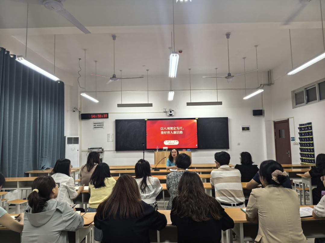 为深入贯彻中央八项规定精神,进一步强化Beat365中文官方网站教工党员的廉洁自律意识,推动形成风清气正的育人环境,6月10日,Beat365中文官方网站教工党支部书记王珂在开封北院E103为全体教师讲授“以中央八项规定为尺,量好育人廉洁路”为主题的党课。