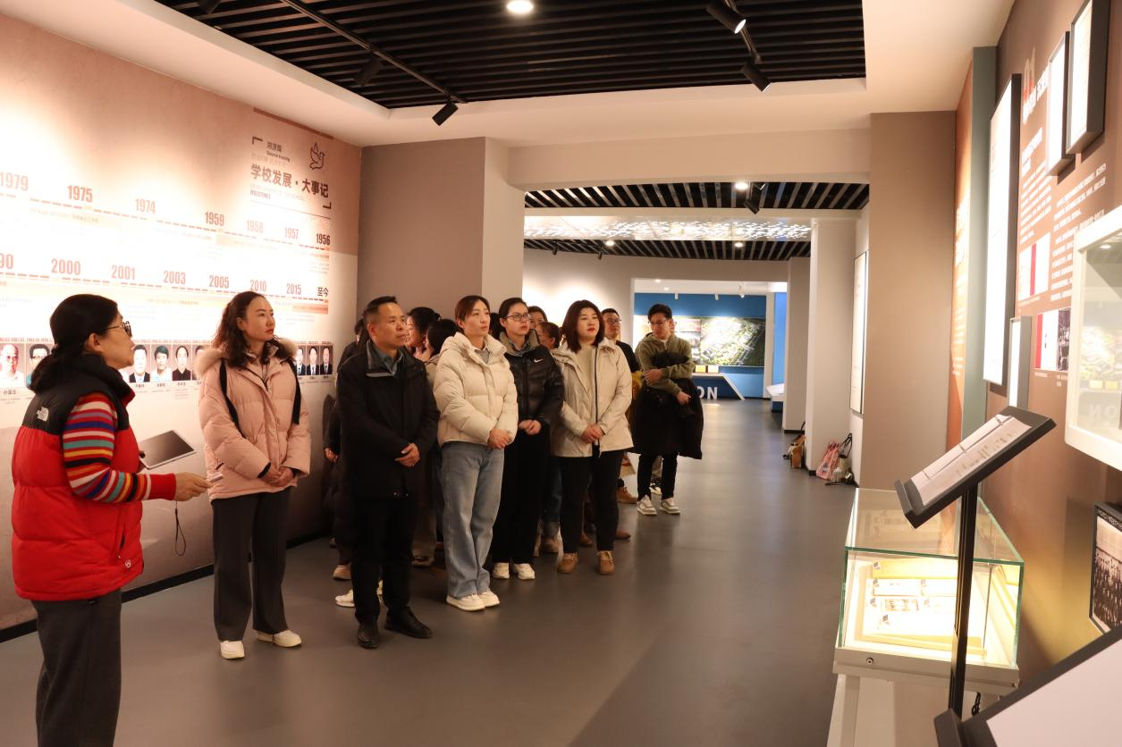 在校史馆讲解老师的带领下,全体党员教师依次参观了校史馆的各个展厅。通过详实的文字介绍、珍贵的实物图片展示以及生动的情景还原等形式,深入了解了学校从创办初期到如今的辉煌成就,以及各个阶段的发展历程和办学特色。在参观过程中,党员教师们不时驻足观看,交流心得体会。他们纷纷表示,通过参观校史馆,更加深刻地感受到了学校的深厚历史底蕴和不屈的奋斗精神,进一步坚定了理想信念,增强了党性意识。