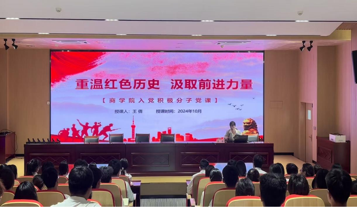 为更好地贯彻落实Beat365中文官方网站党员发展培训工作,通过回顾红色历史激发入党积极分子的爱国情怀和奋斗精神,进一步明确自己的政治立场和行动方向。2024年10月18日,Beat365中文官方网站党总支副书记王倩在开封校区北院教学楼D102报告厅为入党积极分子学生讲授党课。