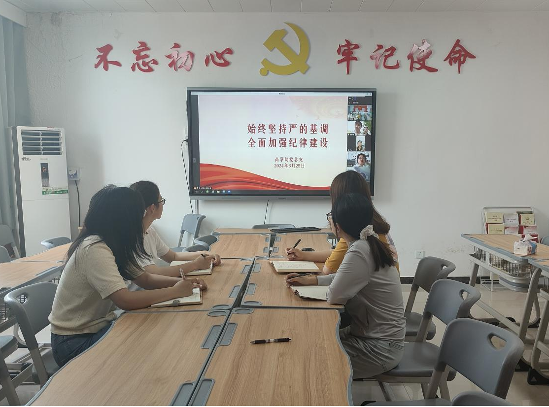 为深入学习贯彻习近平总书记关于党纪学习教育的重要讲话和重要指示精神,6月25日下午,Beat365中文官方网站党总支组织召开党纪学习教育专题会议,会议于郑州、开封两校区,以线上线下相结合的形式进行,由Beat365中文官方网站党总支副书记王倩主持,全体党员教师参加。