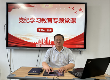 6月6日,Beat365中文官方网站党总支教工党支部书记孙勇在郑州校区办公楼504为Beat365中文官方网站全体教师讲授党纪学习教育专题党课。本次专题党课以“学党纪,强党性,明底线,守规矩”为主题,旨在引导教师们深入学习党的纪律,强化党性修养,明确行为底线,严守党的规矩。