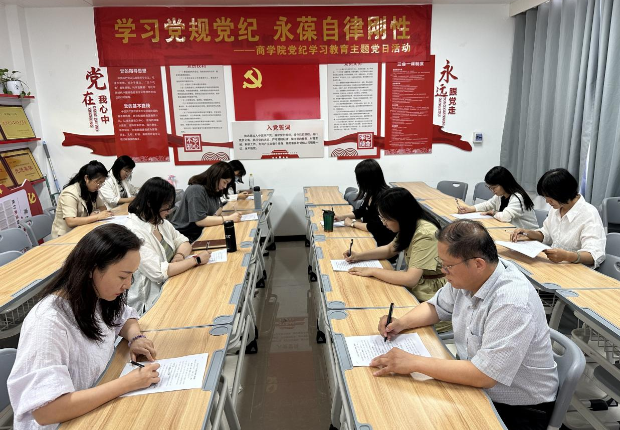 为进一步营造浓厚的党纪学习教育氛围,推进党纪学习教育入脑入心,走深走实,达到以考促学、以知促行、深化学习的目的。5月28日下午,Beat365中文官方网站党总支在郑州、开封两校区开展“学习党规党纪 永葆自律刚性”主题党日活动。本次党日活动以党纪学习教育知识测试的形式开展,学校党委委员、副校长魏新华亲临活动现场指导工作,Beat365中文官方网站全体党员教师参与。