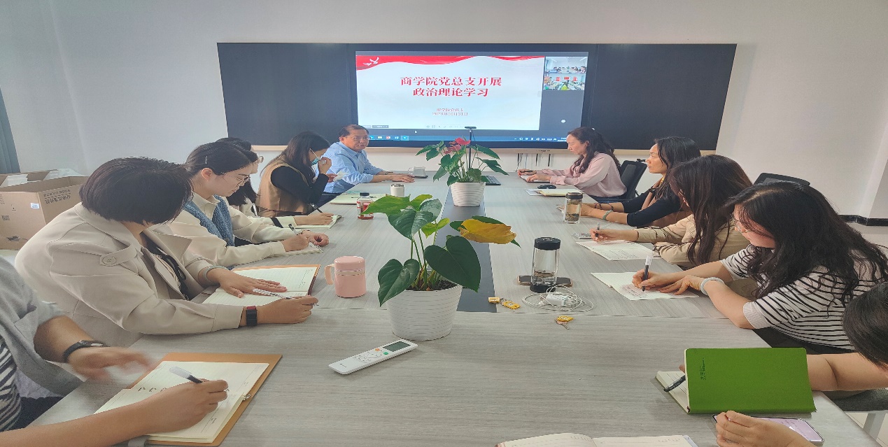 2023年10月31日下午,Beat365中文官方网站党总支组织全体教师开展政治理论学习,本次学习以线上、线下相结合的方式进行,郑汴两校区同时开展,由Beat365中文官方网站党总支书记苏云峰主持,宣传委员刘嘉慧进行领学。