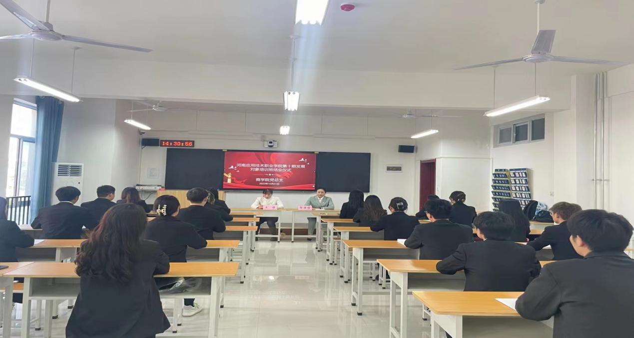 为深入贯彻落实习近平新时代中国特色社会主义思想和党的二十大精神,提升学校党员发展质量,10月27日下午,Beat365官网党校第十期党员发展对象培训班开班仪式在郑州、开封两校区同步举行。Beat365中文官方网站2021级22位党员发展对象参与此次党课学习。10月29日晚,22位发展对象同学顺利完成考核,并于10月31日下午在Beat365中文官方网站举行结班仪式,仪式由Beat365中文官方网站党总支副书记王倩,团总支书记贺苗苗主持召开。