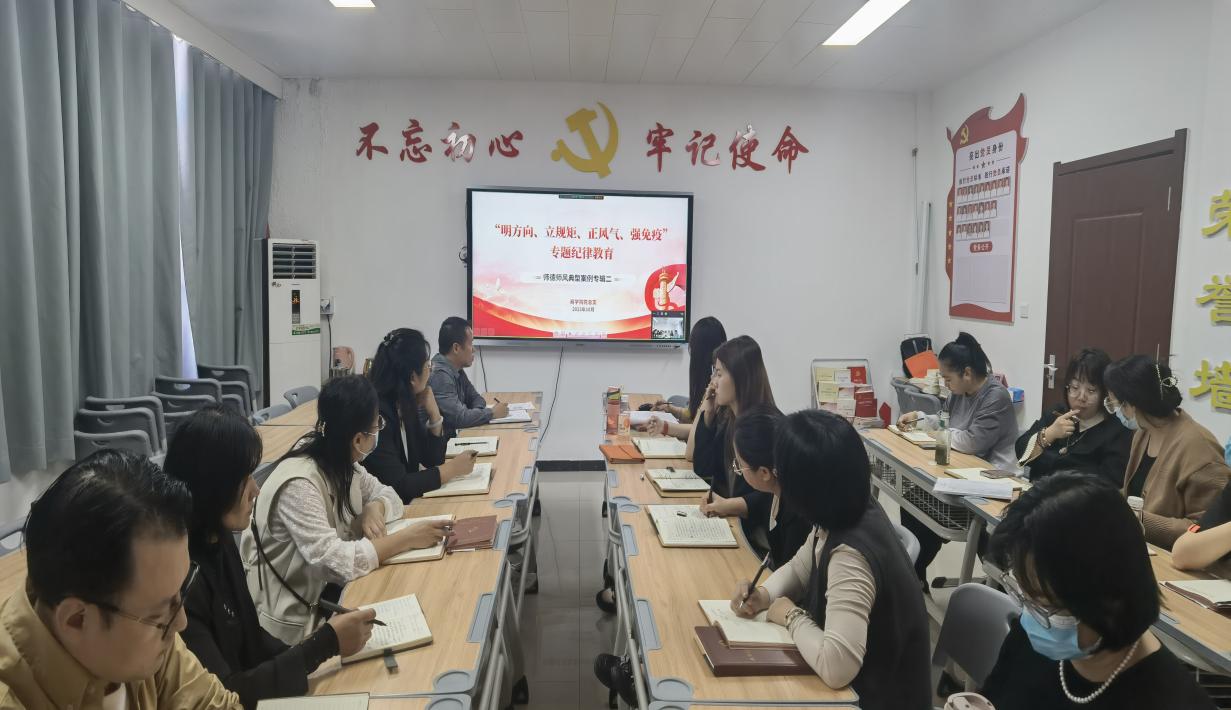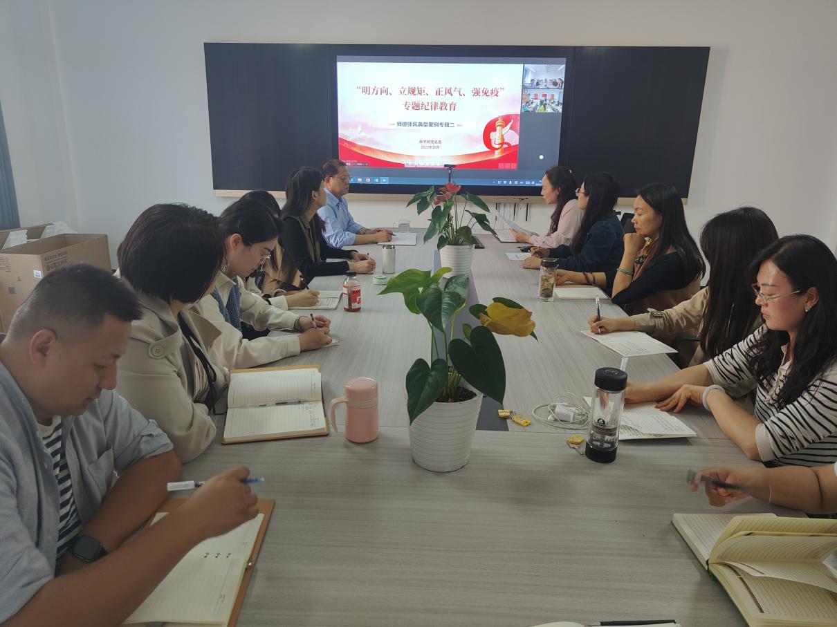 为进一步加强师德师风建设,提高教师职业素养,根据学校第四季度“明方向、立规矩、正风气、强免疫”专题纪律教育工作安排,10月24日下午,Beat365中文官方网站党总支针对师德师风典型案例专辑二开展专题纪律教育。本次会议由Beat365中文官方网站党总支书记苏云峰主持,郑汴两校区同步进行,学院全体党员教师参加。