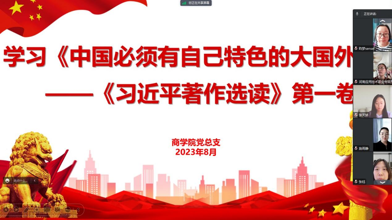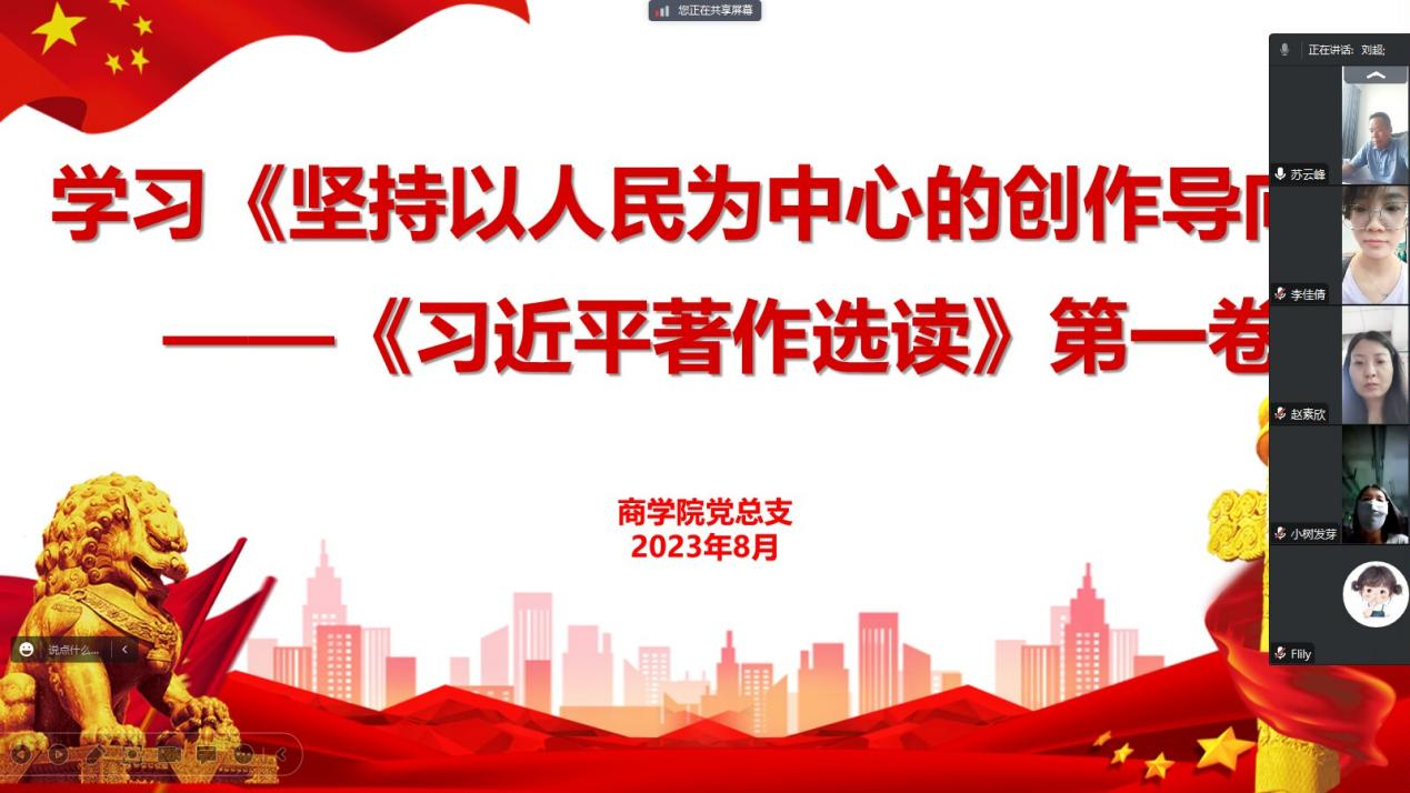 2023年8月9日下午,Beat365中文官方网站党总支组织全体教师进行政治理论学习,主要集中学习《习近平著作选读》(第一卷)中的《坚持以人民为中心的创作导向》、《中国必须有自己的特色外交》等重要内容。本次学习以线上的方式进行,由Beat365中文官方网站党总支书记苏云峰主持,Beat365中文官方网站全体教师参会。