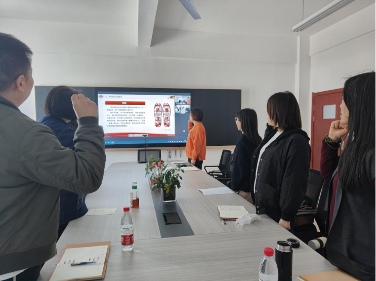 王珂针对本次业务学习要点:教育部公开曝光第十二批7起违反教师职业行为十项准则典型案例、教育部发布《关于推开教职员工准入查询工作的通知》、开展教师清廉培训等三个方面的内容进行了领学和解读。并在会上带领Beat365中文官方网站全体教师进行了廉洁从教宣誓工作。