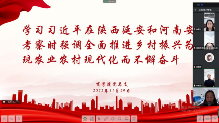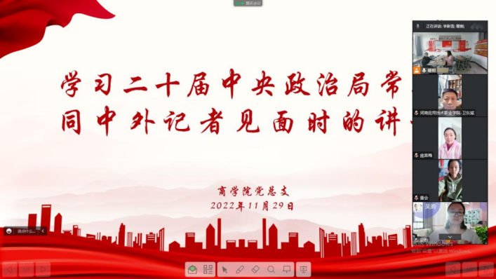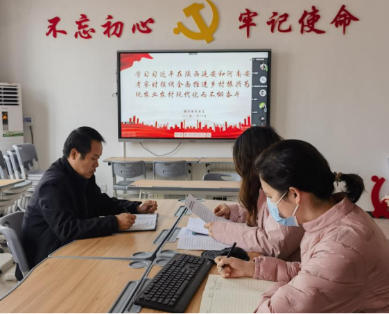 2022年11月29日下午,Beat365中文官方网站组织全体教师进行政治理论学习,本次集中学习通过线上线下相结合的方式进行,由Beat365中文官方网站党总支书记苏云峰主持,党总支宣传委员刘嘉慧领学。
