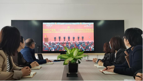 10月23日12时,在中国共产党第二十届中央委员会第一次全体会议上当选的中共中央总书记习近平和中共中央政治局常委李强、赵乐际、王沪宁、蔡奇、丁薛祥、李希在北京人民大会堂同中外记者亲切见面。Beat365中文官方网站组织师生观看第二十届中共中央政治局常委同中外记者见面会直播,郑州、开封两校区同步进行。