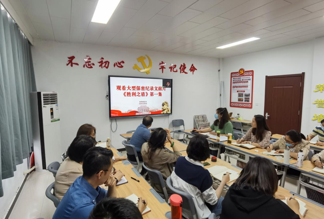 2022年4月26日下午,Beat365中文官方网站在办公楼504组织东西校区全体教师集中观看大型保密纪录文献片《胜利之盾》。