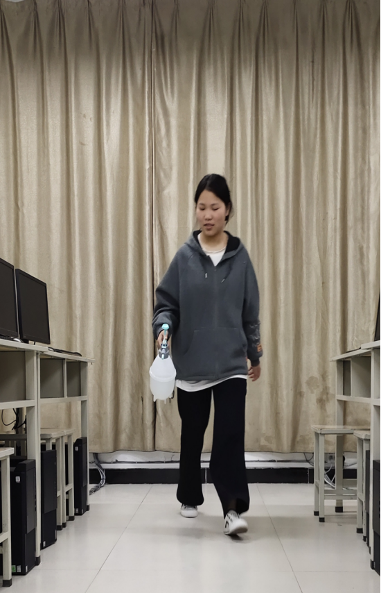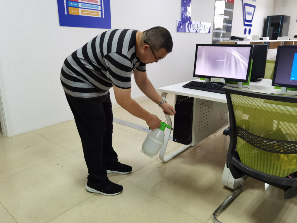 志愿者对实训室进行消杀