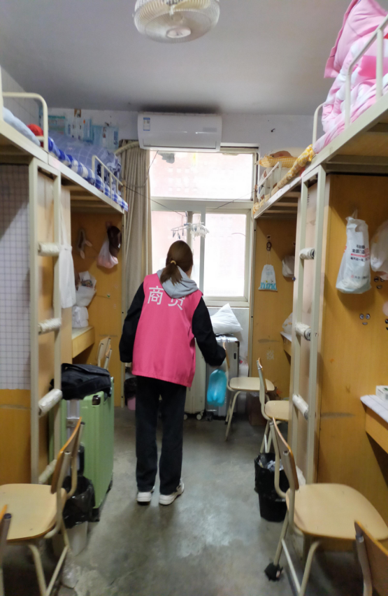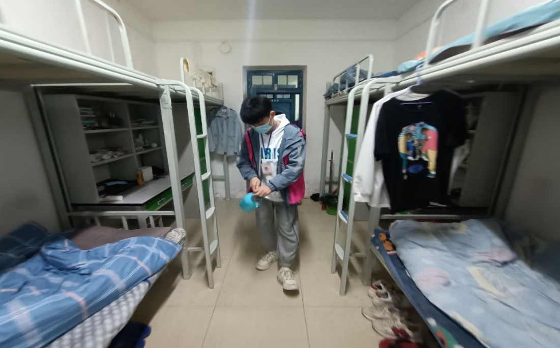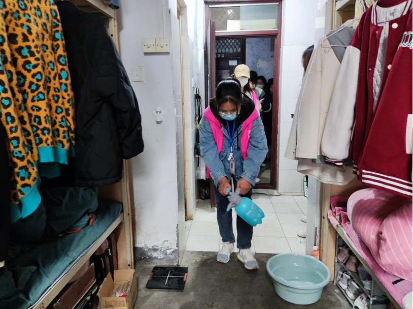 志愿者对宿舍进行消杀