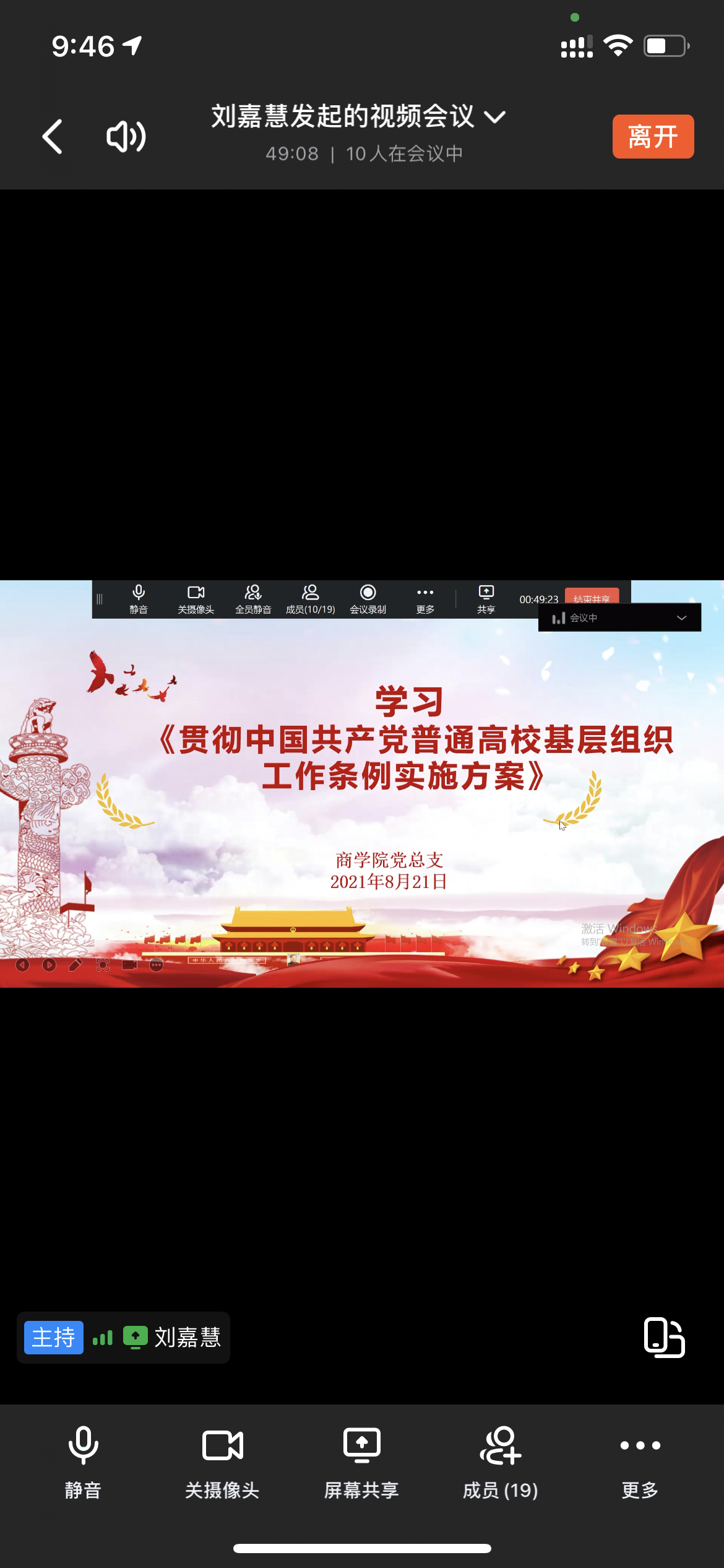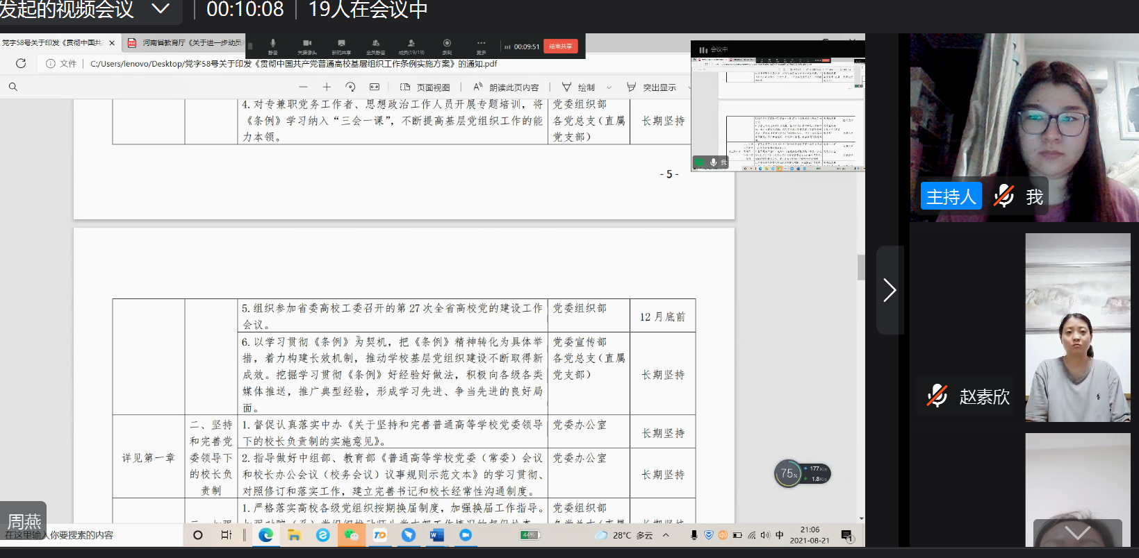 “一个支部一座堡垒,一名党员一面旗帜”,今年是建党100周年,为深入学习《贯彻< 中国共产党普通高校基层组织工作条例>实施方案》,Beat365中文官方网站党总支于2021年8月21日召开线上学习会。会议由Beat365中文官方网站党总支书记周燕主持。