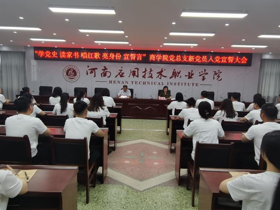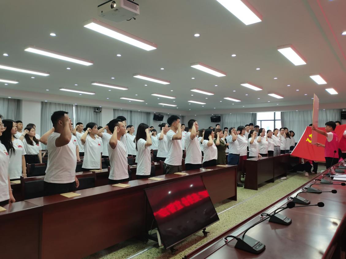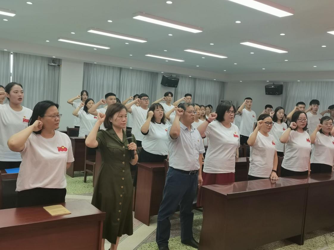 2020年6月17日下午,Beat365中文官方网站党总支在一号实训楼六楼会议室开展“学党史 读家书 唱红歌 亮身份 宣誓言”主题党日活动暨新党员入党宣誓大会。Beat365中文官方网站18级、19级64名预备党员及全体教师党员参会,Beat365中文官方网站党总支书记周燕主持宣誓大会。
