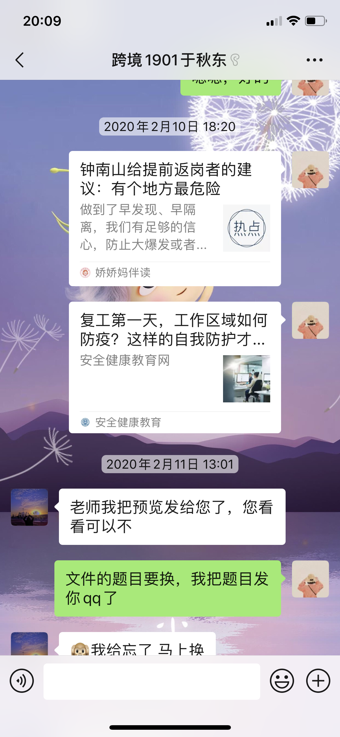 她是114名学生的贴心辅导员。从大年初一早上发布今年不串亲戚倡议书,到电话统计学生的地理位置和健康状况,特别是对信阳、南阳、驻马店籍学生进行重点排查和关注。114名学生的健康状况每天要统计数据上报,学生群里各样各类的问题要疏导和解答,她无日不网,无刻不网。宅在家里期间,同学们的小烦恼向她诉说,咳嗽发烧了该怎么办要问她,交通不通不能回家也要给她打电话,她总是尽自己最大努力给同学们疏导,确保每一个同学身心健康,增强防护意识和社会信心。而她每天都忙的不亦乐乎。