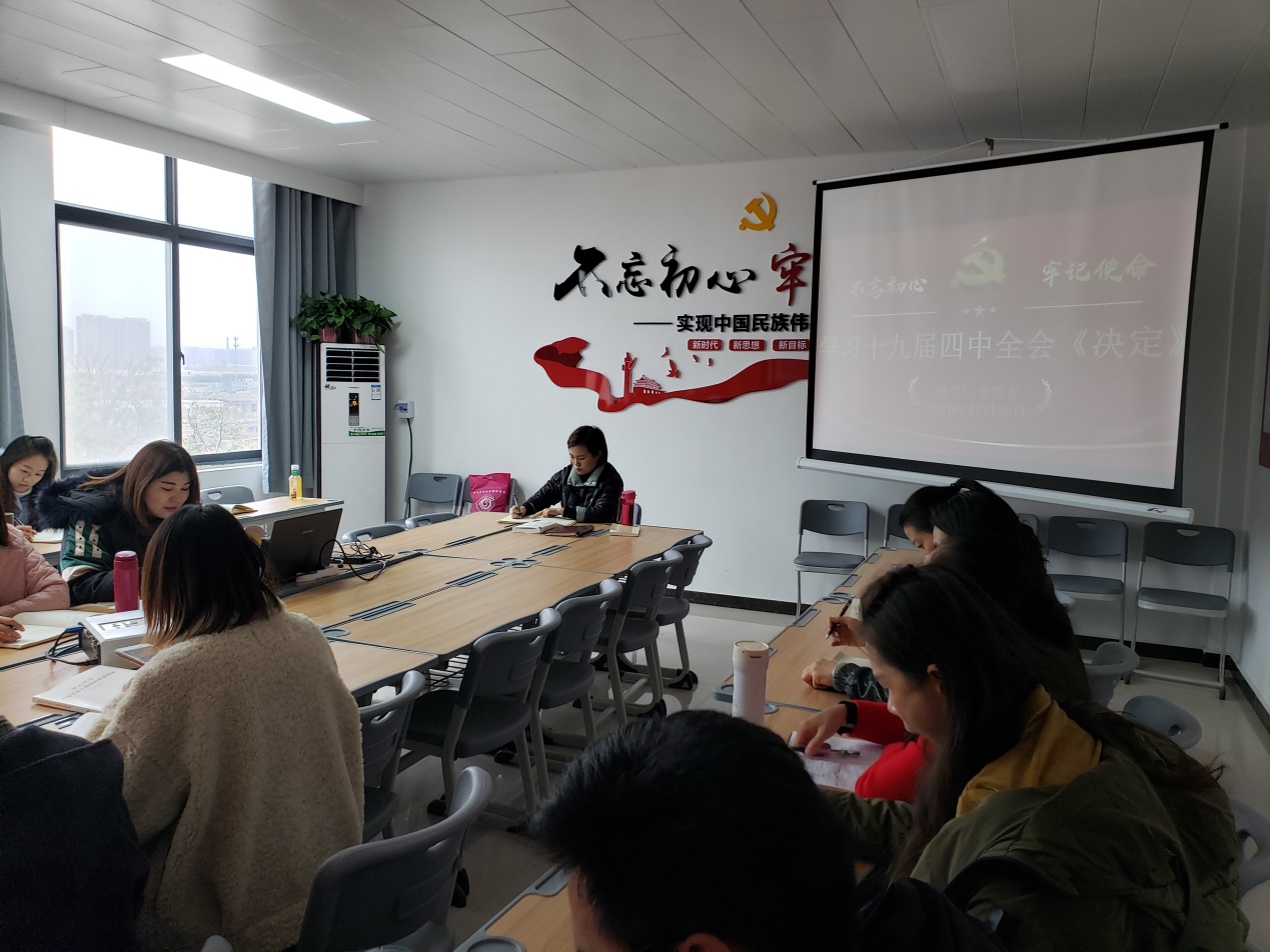 为持续推动我院“不忘初心、牢记使命”主题教育走心走实,及时跟进学习内容,在学深悟透新思想上再提升,2019年11月26日下午,Beat365中文官方网站党总支组织全体教师在办公楼504活动室举行党的十九届四中全会精神专题学习会。党总支副书记周燕书记主持。