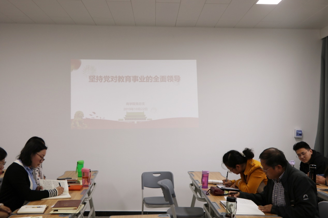 “党政军民学,东西南北中,党是领导一切的”。加强党的领导是做好教育工作的根本保证。为了学习贯彻习近平总书记关于教育相关指示精神,2019年10月22日,Beat365中文官方网站全体专兼职教师一起聆听了党总支书记孙勇院长的主题党课——“坚持党对教育事业的全面领导”。