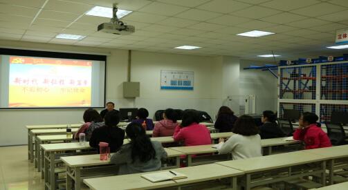 为了学习贯彻党的“十九大报告”精神,2017 年11月6日,商贸学院院长孙勇同志在E615实训室给商贸学院全体党员上了一场生动的党课,此次党课会议由商贸学院党总支书记周燕同志主持,商贸学院全体党员参加。