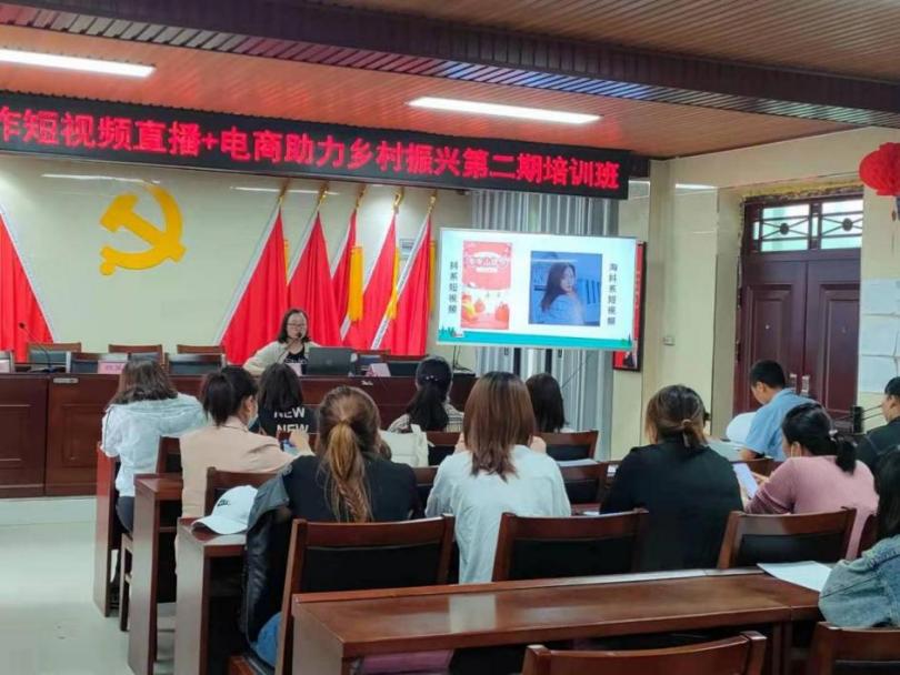 2021年5月19日,Beat365中文官方网站电子商务技术服务队再次来到开封市祥符区刘店乡授课。本次服务队由吴昀老师带队,电商工作室创客角的段笑迎、田奥奇同学分别作为主播助教和短视频助教,对乡民进行实践指导。有了上次的培训基础,乡村主播们的学习热情更加高涨。
