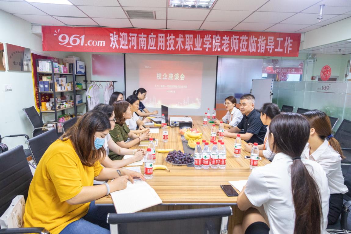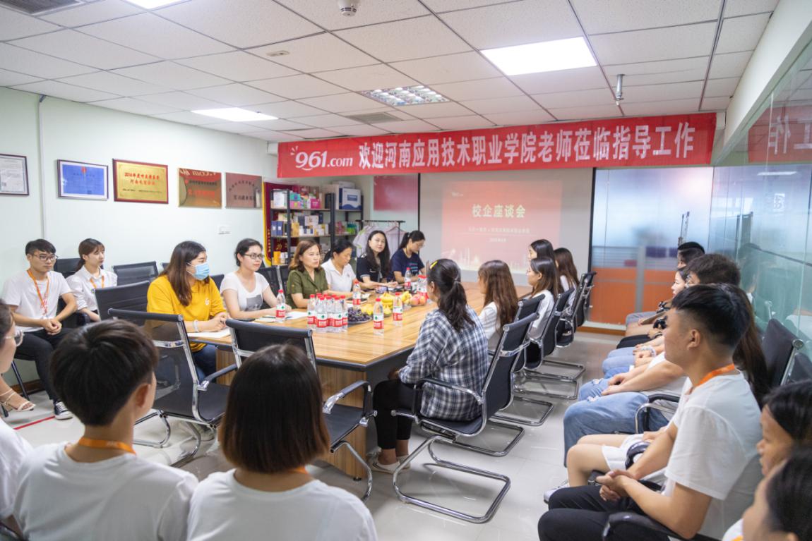 为加强与企业的沟通联系,获悉企业对人才的需求和质量要求,加强学生实习期间的思想教育,更好跟踪调查学生的实习就业情况,2020年8月6日,Beat365中文官方网站周燕书记和思政教学部何秀霞主任,以及Beat365中文官方网站和思政部相关教师来到郑州九六一电子商务有限公司,调研及回访学生就业情况。