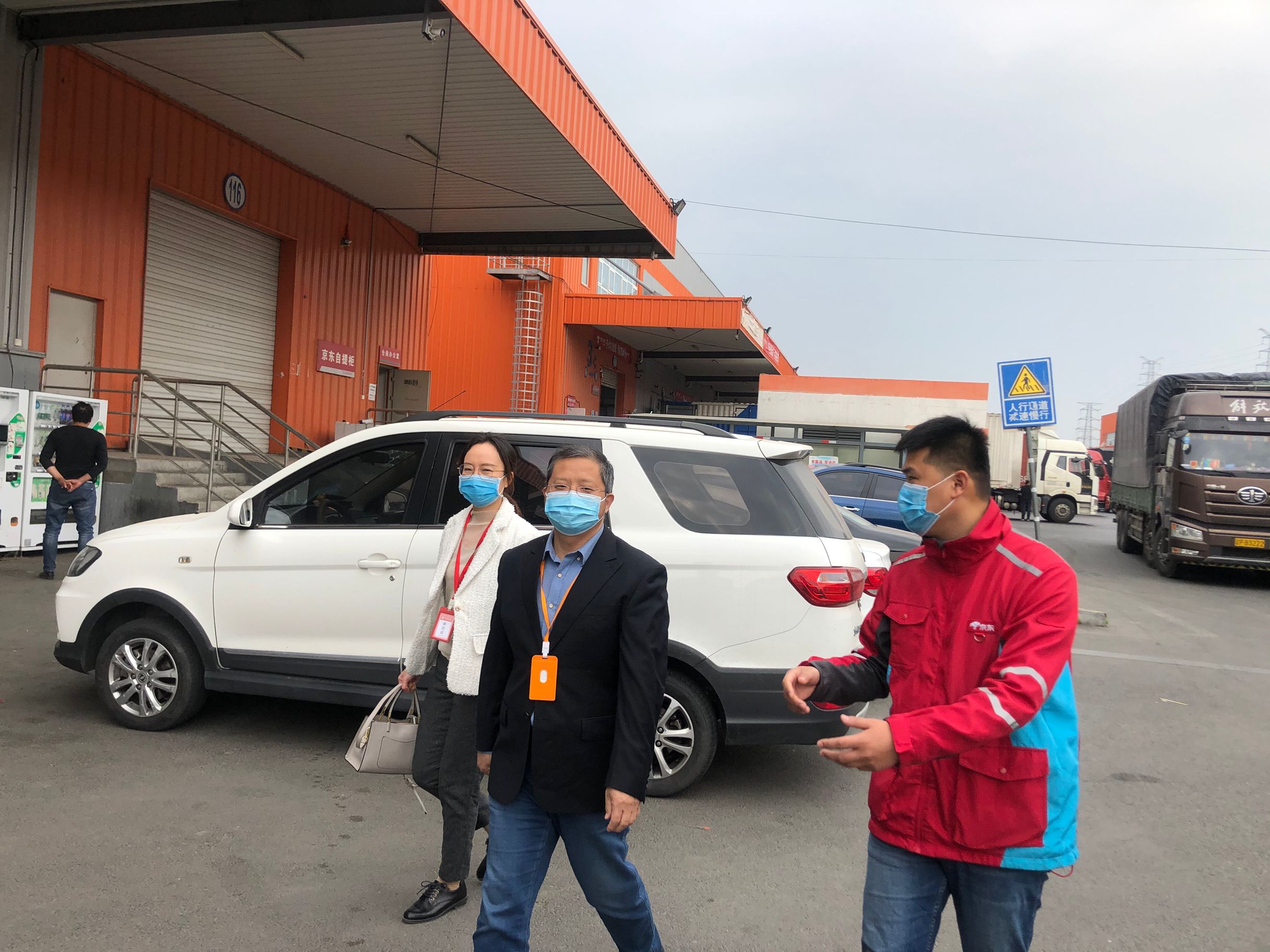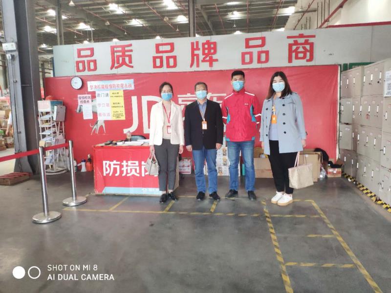 京东物流以打造客户体验最优的物流履约平台为使命,拥有中国电商领域规模最大的物流基础设施,现已全面升级为“以供应链为基础的技术与服务公司”。京东物流中心中含仓储中心、分拣中心、冷链物流处理等区域。进入场区后,京东商城物流中心现场贴有疫情防护图示,进入中心有严格的健康审查程序,健康码、测量体温、工作人员均佩戴口罩、保持一定的操作距离等,疫情各项防护措施十分到位。