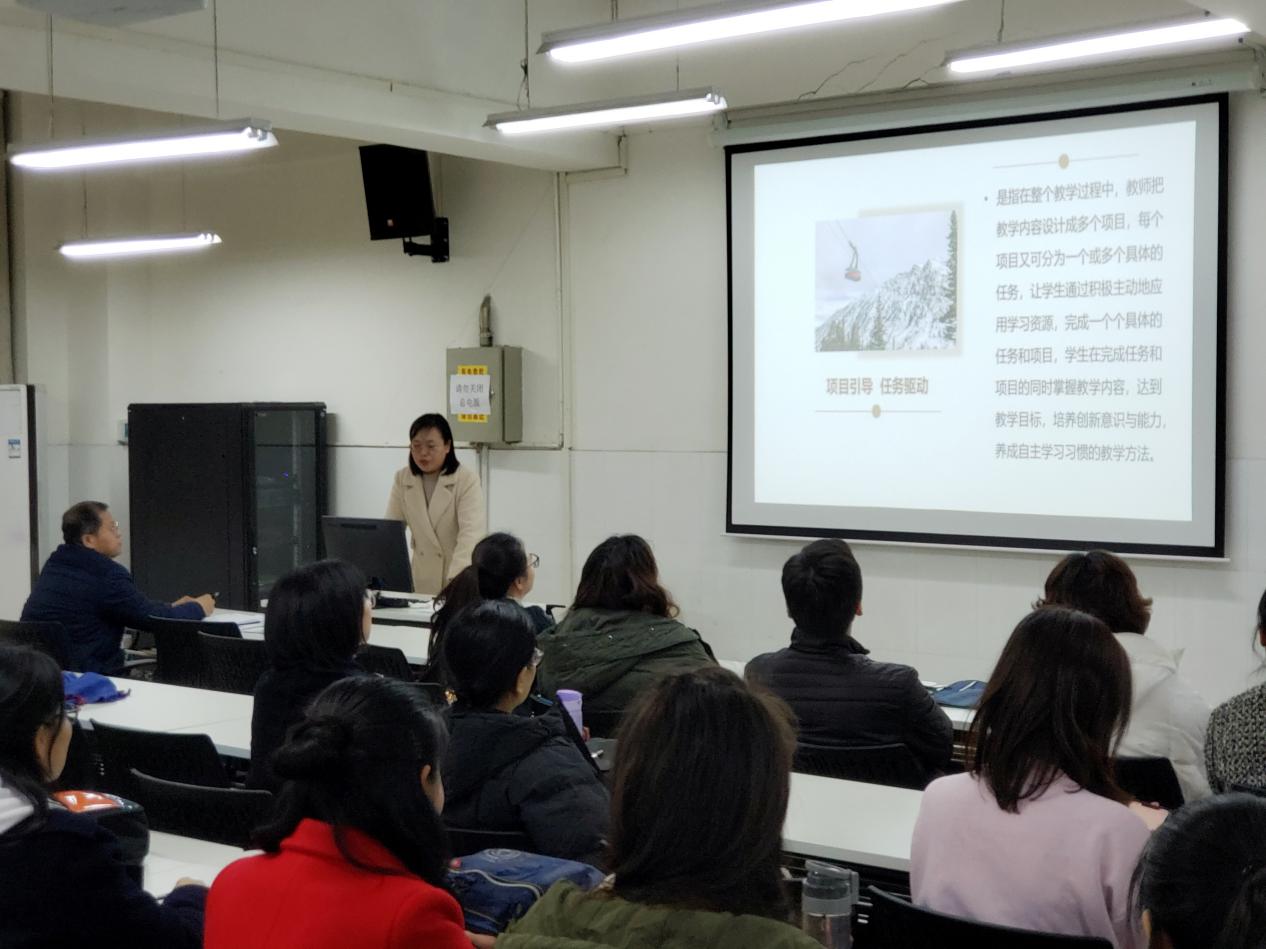 接着,工商管理教研室主任范丽丽老师同大家共同学习和分享了她眼中的“项目引导、任务驱动”为主题的课程改革实践。范老师以《商务礼仪》课程为示范,分别从什么是项目引导、任务驱动教学法两部分讲起,结合教案和学生任务指导书的设计,结合自己多年来的教学经验,和大家进行了充分的分享和交流。