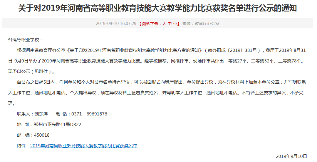 9月10日,获奖名单在省教育厅官网进行了公示: