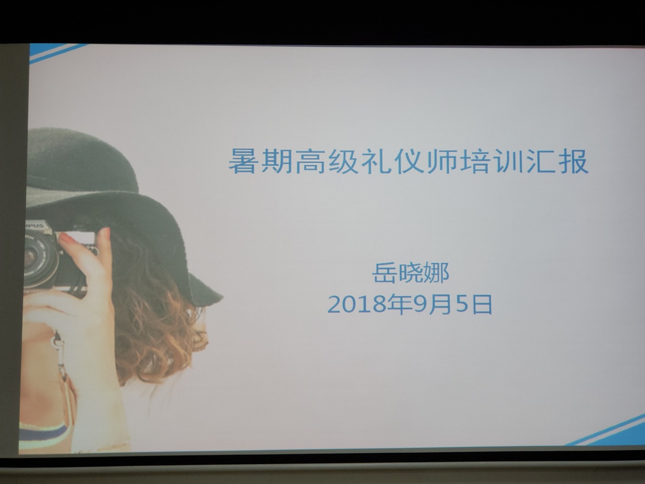 2018年夏天,岳晓娜老师到上海参加了为期7天的全国第三期高级礼仪师培训,整个培训贯彻理论联系实际的原则,聘请的授课教师团队既包括著名旅游院校资深教师、高职教育权威专家,还有行业协会知名人士。教学安排合理,有鲜明的理论性、现实性、针对性与实践性。本次培训由上海旅游高等专科学校主办。