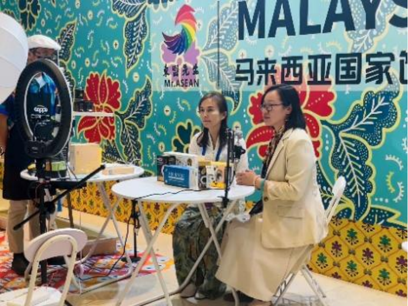 毛爽老师在展会现场对马来西亚展商进行访谈