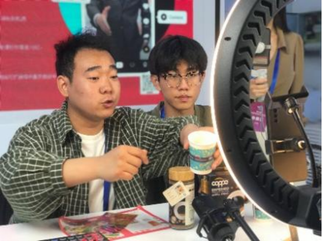 直播分配为四个小组,每组三人,分为逛展引流组、跨境直播组、马来特产(抖音)组和马来特产(京东)组。在此过程中各小组充分运用专业知识,迅速完成直播间的搭建、话术设计、引流短视频制作和现场直播实施等环节,向直播间的观众介绍了马来西亚展馆丰富的产品,吸引了众多观众线上和线下参展。