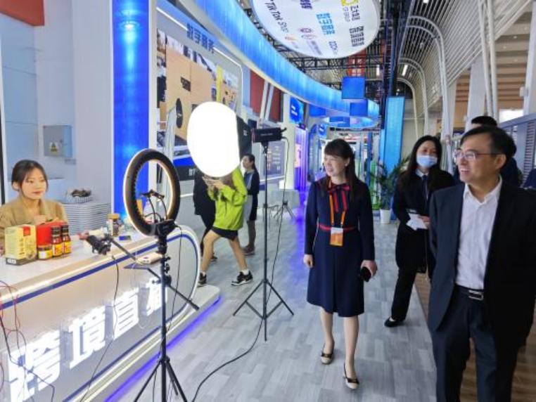 河南省商务厅副厅长等领导来到现场对直播工作进行视察和指导,充分肯定了师生团队的专业素质和专业能力。