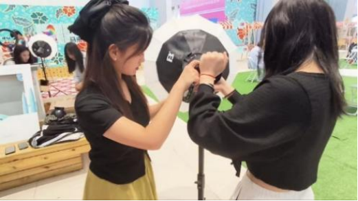 Beat365中文官方网站电商工作室师生代表应邀参加第七届全球跨境电商大会,负责马来西亚国家展区部分商品的现场直播服务。5月8日上午,团队提前到达展会现场进行直播搭建,测试设备。