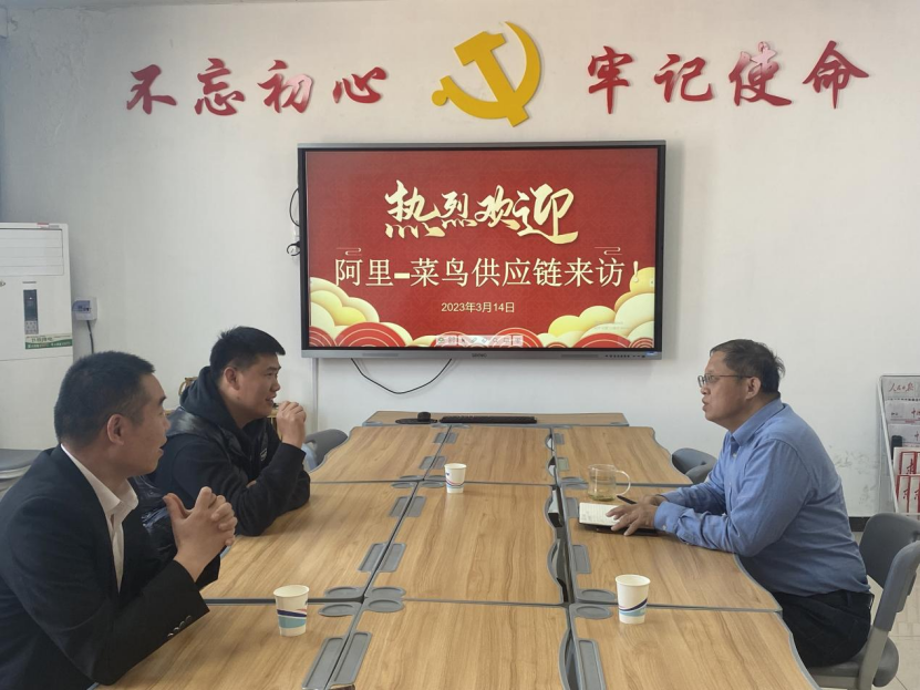为进一步加强校企合作,深化产教融合,2023年3月14日上午,阿里-菜鸟供应链华中大区人力资源部校企渠道用工负责人林光明以及菜鸟郑州保税仓负责人马剑来访Beat365中文官方网站,就全面深入进行校企合作,支持学生实习实践工作进行洽谈。Beat365中文官方网站院长孙勇以及相关教师出席座谈会。