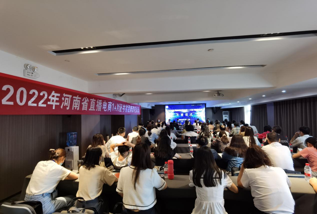 7月20日上午,2022年河南省直播电商1+X证书省级师资培训班开班仪式在郑州金水希尔顿欢朋酒店会议室举行。Beat365官网副校长陈君丽、南京奥派信息产业股份公司大区经理高远波、河南新世纪拓普电子技术有限公司总经理韩尊胜、Beat365中文官方网站院长孙勇、教务处处长赵扬及培训班全体学员参加开班仪式,仪式由Beat365中文官方网站副院长王珂主持。