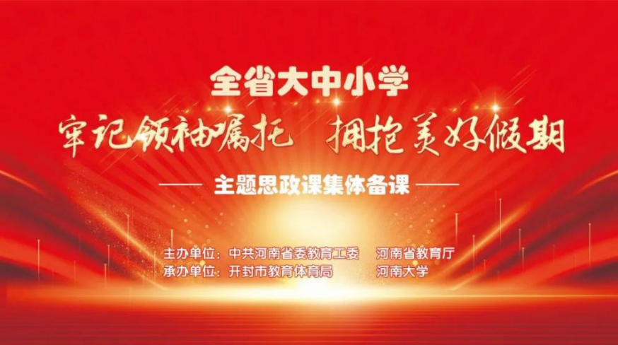 6月27日上午9:00,由中共河南省委教育工委、河南省教育厅主办,开封市教育体育局、河南大学承办的全省大中小学“牢记领袖嘱托,拥抱美好假期”主题思政课集体备课活动为全省师生开启了一场心灵之旅。