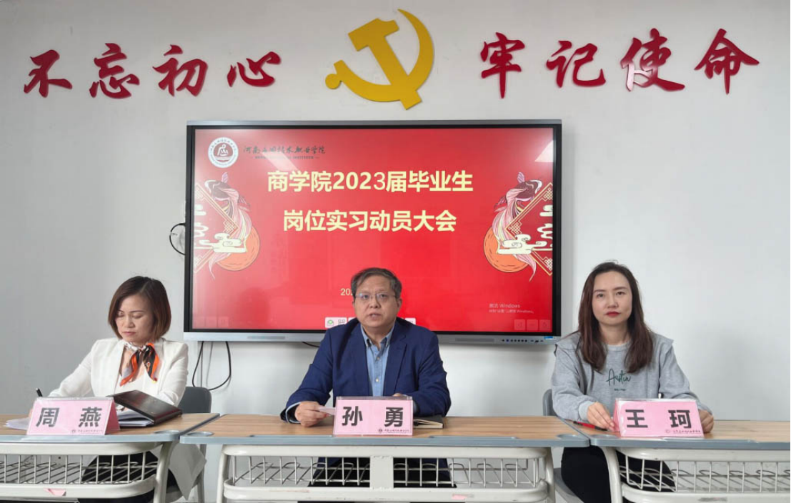 书记周燕结合当前就业的严峻形势,解读了商科专业的就业机遇,对学生参加实习环节提出几点建议:首先,要降低预期目标,从基层做起;其次,要先就业,再择业,抓住校园招聘机遇;最后,要结合自身情况,选择有成长空间的行业,积极开展创新创业,同时也可以选择积极参军,报效祖国。希望同学们在实习过程中,勤学多练,不怕吃苦,努力提升个人技能,脚踏实地为人处世。